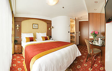 One of the 361-foot (110-meter) riverboats in Tauck's Destination Fleet, the newly redesigned ms Treasures debuted in 2018 with a new deck plan optimized for the utmost in spaciousness – with 70% of her cabins measuring 225 square feet or larger – and accommodating no more than 98 guests, while similar-sized riverboats average about 160. Guest amenities inside her 14 lush 300-square-foot Tauck Suites include brocade upholstery, roomy walk-in closets with built-in drawers, spacious bathrooms with separate showers, and two French balconies with floor-to-ceiling windows that open to idyllic riverscapes. She also sports twenty roomy 225-square-foot cabins, four 183-square-foot cabins and one 182 square-foot cabin, similarly furnished. Eight 150-square-foot cabins are cozy and comfortable, and are similar in décor and style to our larger suites. 85% have floor-to-ceiling windows with real French balconies that open on to a balcony in the fresh air; all have in-room movies, minibar, adjustable heating and cooling, private bathroom and shower with pampering toiletries. In addition to our main dining room, The Compass Rose, the ship also features Arthur's, a second dining venue offering casual fare.