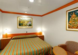 Two lower beds can convert to queen size. Direct dial, ship-to-shore telephone service, television, hair dryer, safe deposit box and mini-bar in every stateroom.