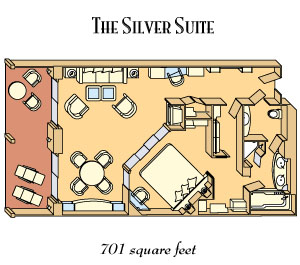 Stylish and sophisticated, located midship, the Silver Suites are perfection in design for comfortable living.Guests can expect a Teak veranda with patio furniture and floor-to-ceiling glass doors, a large living room complete with convertible sofa to accommodate an additional guest as well as a separate dining area.Fitted with twin beds or queen-sized bed, the Silver Suites have a marbled bathroom with double vanity, full-sized bath, separate shower, a walk-in wardrobe with personal safe is provided along with a Radio/alarm with iPod docking station, direct-dial telephone, and a refrigerator and bar setup, stocked with your preferences. Pratesi® fine bed linens and down duvet covers, premium mattresses and a choice of pillows, Plush robes and slippers, choice of European bath amenities, vanity table(s) with hair dryer, writing desk(s) with personalised stationery, binoculars, and umbrella, WiFi access, flat screen TV(s), on-demand movies, and satellite news, complimentary interactive mobile content, and dry cleaning and pressing service (fee applies).